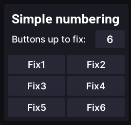 This mode allows you to quickly name a set of lights that are lined up one after another. Put the fixture number you want to start with in the text box and press Start. Then select the fixtures you want to rename and press the Rename selection FixX button to go to the next fixture number. For example if you started with 1, pressing Rename selection Fix1 will then ask you to select fixtures to be named Fix2, then Fix3 and so on.