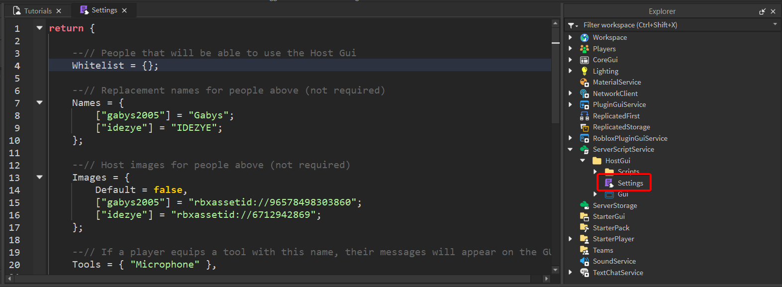 The Host GUI has multiple settings you can change, but this tutorial will focus only on the first setting named Whitelist. It should be located on line 4 of the script.