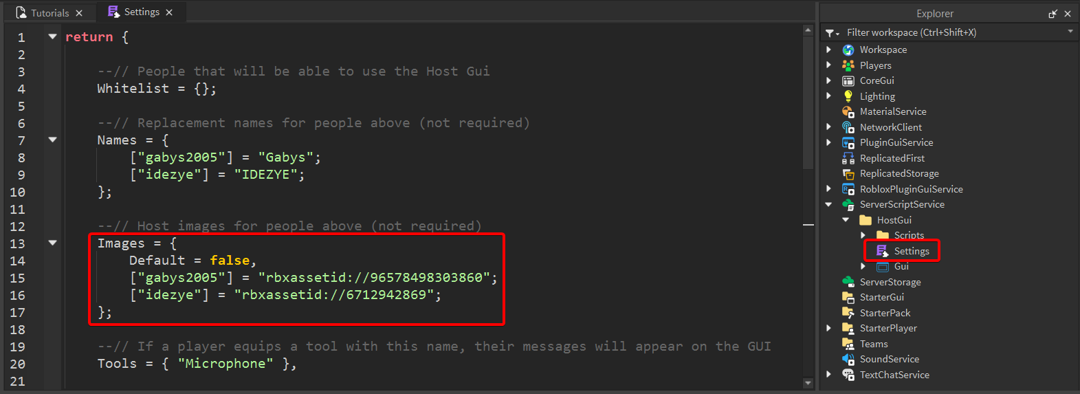 Open the HostGui folder and double click the Settings script. The Images setting should be at or around line 13.