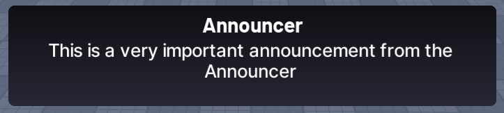 HostGUI:SendMessage("Announcer", "This is a very important announcement from the Announcer")